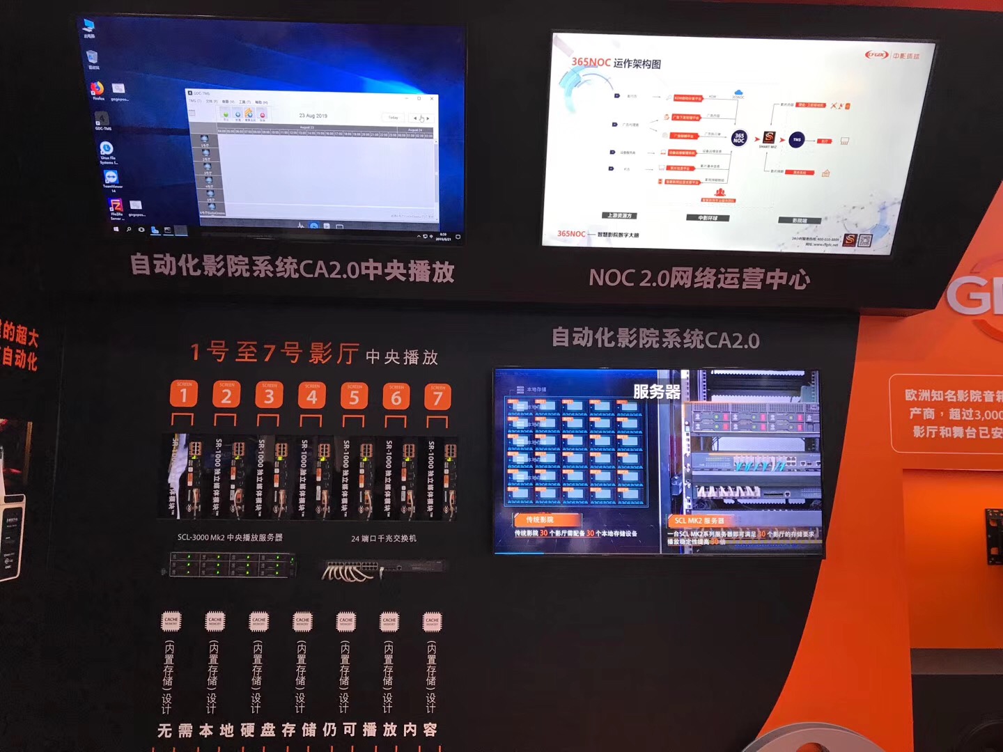 GDC此次展示的最新版CA2.0集成了SCL MK2系列中央播放服務(wù)器,其中,SCL-4000 Mk2可最多支持30個影廳。與傳統(tǒng)方式相比,SCL Mk2系列服務(wù)器的存儲容量增加了100倍,滿足了放映商對“在線”內(nèi)容的需求,使影院在激烈的市場競爭中更勝一籌。